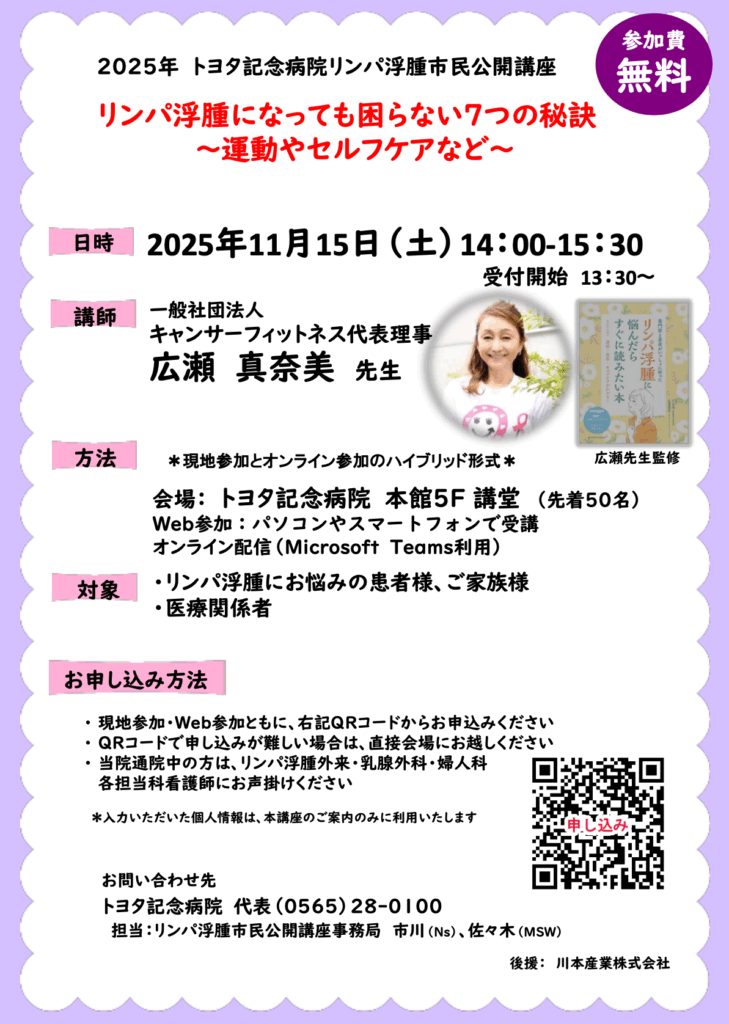 先着50人(当日直接会場)そのほか詳細はトヨタ記念病院ホームページをご確認下さい。