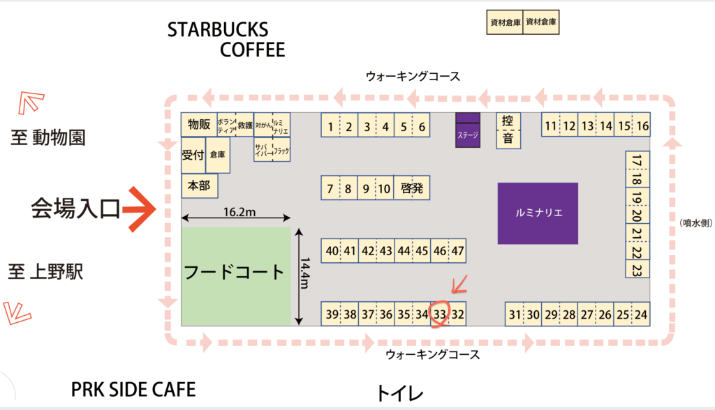 ❤️キャンサーフィットネスのブースは、地図を添付しましたが赤丸の33番です。